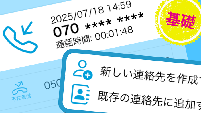 通話履歴から連絡先登録。番号自動入力で即完了